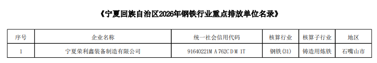 宁夏公布2026年度钢铁行业重点排放单位名录