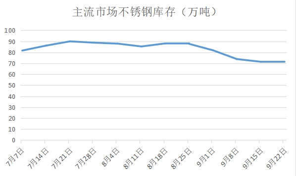 2022年9月15日,全国主流市场不锈钢社会库存总量71.43万吨,周环比下降3.28%,年同比下降4.38%。其中冷轧不锈钢库存总量32万吨,周环比下降5.18%,年同比下降21.12%,热轧不锈钢库存总量39.43万吨,周环比下降1.68%,年同比上升15.50%。