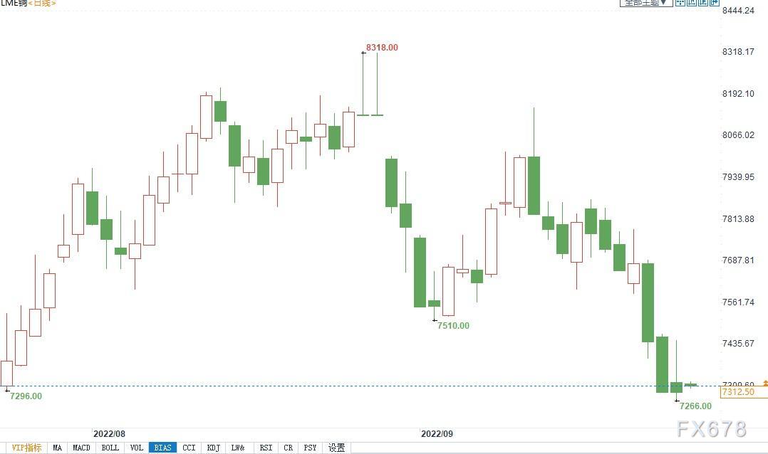 外媒周一早间报道称,伦敦金属交易所(LME)铜价触及两个月低点,跌至每吨7375美元。这是7月底以来的最低水平,较3月份的纪录高点下跌了32%。铝价也下跌,达到每吨2151美元,创18个月新低。与此同时,锡价温和上涨1.5%。
