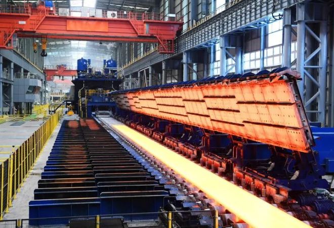 2021年10月11日拍摄的河北省乐亭经济开发区河钢集团唐钢公司的轧钢车间。新华社记者 杨世尧 摄