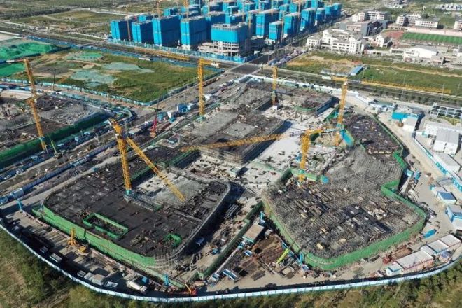 9月7日拍摄的雄安新区启动区中国星网雄安新区总部大楼建设施工现场(无人机照片)。新华社记者 朱旭东 摄