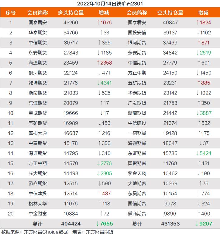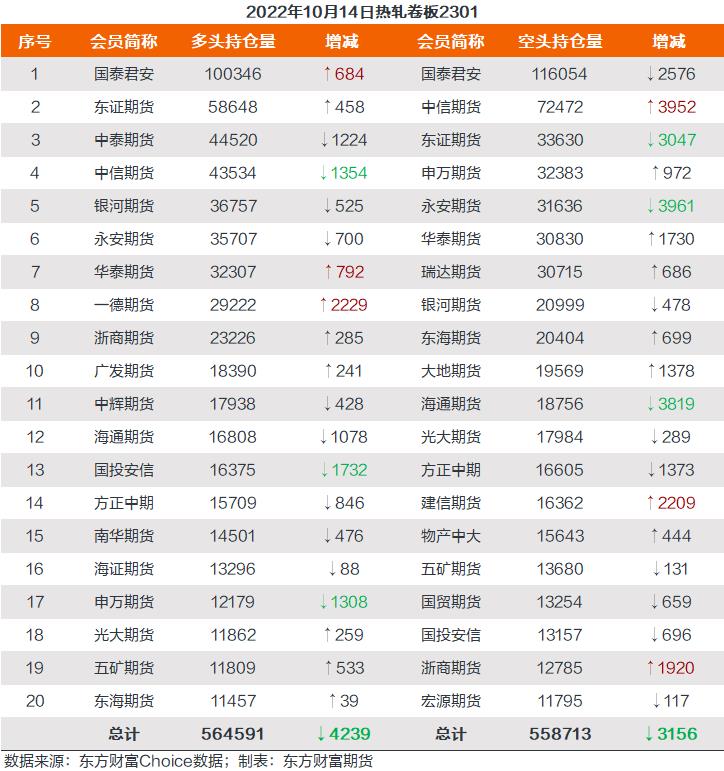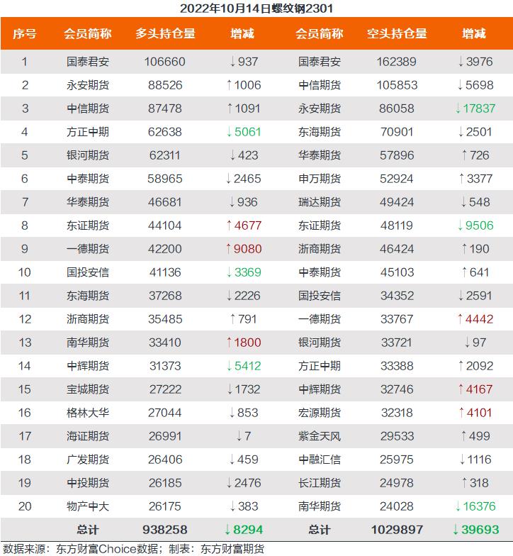 螺纹钢2301合约前20席位多单减仓8294手至93.8万余手,空单减仓39693手至102.9万余手,整体呈净空91639手。其中永安期货多单增持1006手,空单减持17837手,整体呈净多2468手,净持仓由空翻多。