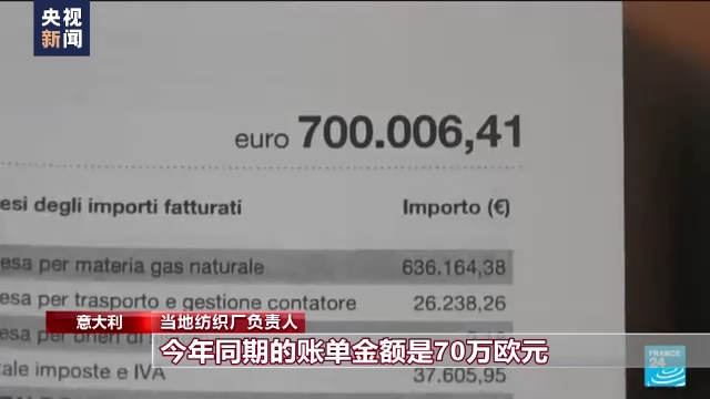 当地纺织厂负责人:请看这个账单,去年的天然气账单金额是8.7万欧元,今年同期的账单金额是70万欧元。