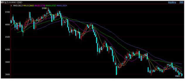 今日期钢大幅下跌,螺纹主力期货跌63,收报3574,跌幅1.73%;热卷主力跌39,收报3623,跌幅1.06%;焦煤主力跌81,收报1966,跌幅3.96%;焦炭主力跌46.5,收报2566.5,跌幅1.78%;铁矿石跌13,收报669.5,跌幅1.9%。黑色系商品走低,螺纹钢主力合约跌近2%,创9月2日以来新低,焦煤主力合约跌近4%,焦炭、螺纹、铁矿跌近2%。