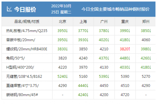 分析师观点:虽然10月份是传统消费旺季,但今年钢市却走出了旺季不旺的节奏,中旬粗钢日均产量下降,钢材库存却是增加的,那么是什么原因导致的这种结果?就是需求未跟上了。在全球经济大环境的影响下,国内经济受创,大宗商品价格连续拉涨,企业经营成本增高,终端采购不敢大批量采购,商家多谨慎操作,需求持续低位,严重影响钢价上涨。