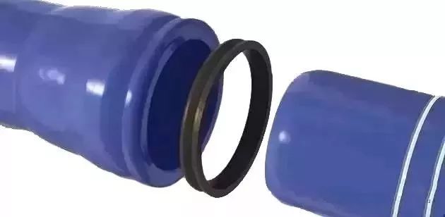 柔性承插连接接头在管道承插口的止封口上放入富有弹性的橡胶圈,然后施力将管子插端插入,形成一个能适应一定范围内的位移和振动的封闭管。