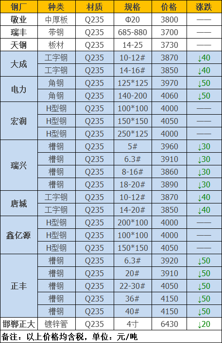 今日板、型、管材共11家钢厂调价发布,其中: