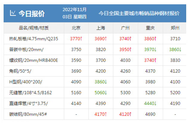 随着3日美联储第五轮加息75个基点落地,缓解经济遭受的高通胀、货币紧缩、俄乌冲突、能源危机等多重冲击,大型钢铁制造商相继实施减产以应对高成本、低需求,加上疫情多点散发,运输受限,南北价差获利空间收窄,不过前期积压的订单有所释放,连续大跌后市场出现小幅反弹修复,加上钢厂停产检修增多,钢企产量下降,本周总库存量下降,商家在恐高心理影响下,部分补库增多,预计短期内钢材价格稳中个涨运行,幅度在10-30。