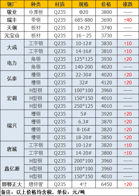 今日板、型、管材共12家钢厂调价发布,其中: