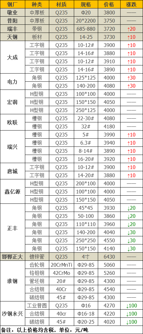 11月11日衢州元立废钢价格上调50元:调后:重一2880元重二2850元重三2800元重四2720元.钢立柱大角钢2950元、工槽钢2900元、阀门2920元、轴承冲子2975元精炉料2960元炉一2880元炉二2770元中一2580元中二2380元小一2280元小二2190元插边2320元。含税到厂。具体价格以元立基准价格表为准。