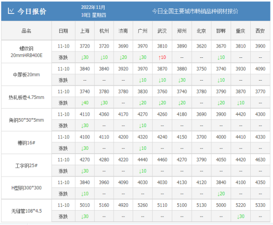 11月10日,现货价格跌多涨少(中钢网智能数据库)