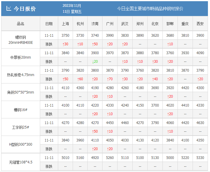 分析师观点:美国10月CPI显示出通胀放缓的迹象,通胀数据好于预期,美联储的紧缩政策或有减弱,大宗商品价格拉涨,美股三大指数全线高开,随后持续走强,国内黑色系期货跟随上行,带动现货市场操作情绪,促进钢材价格拉涨。