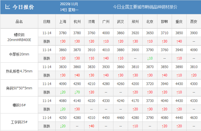 11月14日,现货价格上涨为主(中钢网智能数据库)