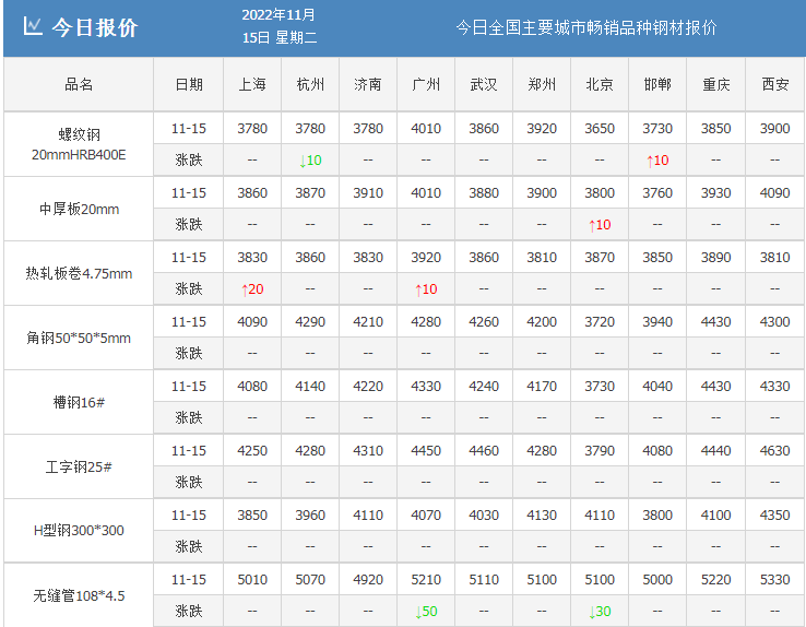 分析师观点:从统计数据来看,10月份钢材产量比去年同期还是增加的,市场库存依然处于高位,在弱需求的情况下,供大于求的格局未有大的改变,商家采购谨慎。进入11月中旬,钢市进入传统消费淡季,钢厂停产检修增多,钢材、粗钢及生铁日均产量环比下降,后期市场供应有望下降,提振市场信心,利好市场价格,但终端需求低迷,大幅拉涨还是有困难。