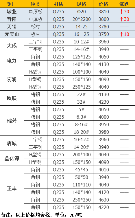 11月17日河南闽源钢铁废钢价格上调50元:矽钢片不变:工厂废料2710-2830,工厂压块2680,矽钢片2630,特级料2830,马蹄铁2730,精料废钢2660,重废8厚2810,重废6厚2760,重废4厚2710,统料废钢2510-2610,冲豆2760-2830,钢筋切头2830,钢筋头2710-2810,钢筋压块2660,未加工毛料2410,不含税。