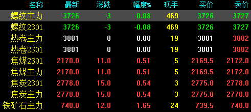 11月17日,黑色系先跌后涨,其中螺纹主力跌3收于3726,热卷主力涨不变收于3801。钢坯价格走稳,收于3560。