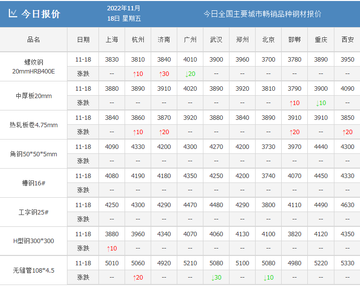 11月18日,现货价格主稳个别上涨(中钢网大数据库)