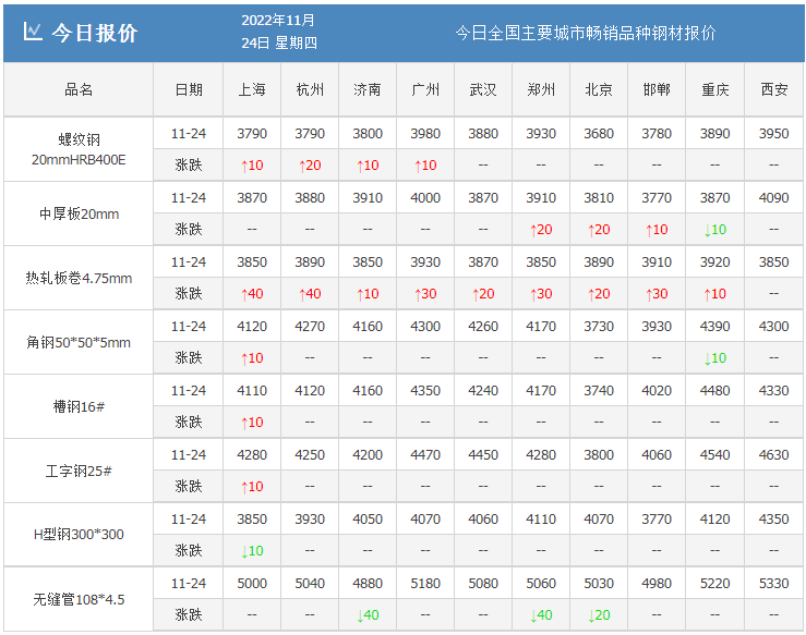 建材24个市场中,7个市场涨10-20,螺纹钢20mmHRB400E平均价格3893元/吨,较上周价格上调1元/吨;