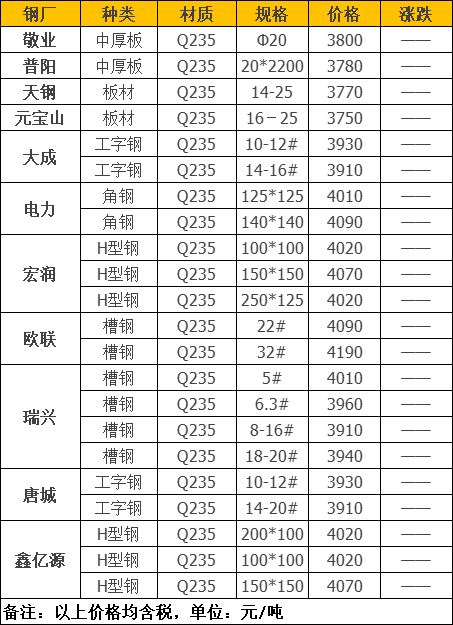 11月25日青拓实业通知:工厂镀锌,矽钢片,冲板,钢筋压块价格不变,其他品种加40。