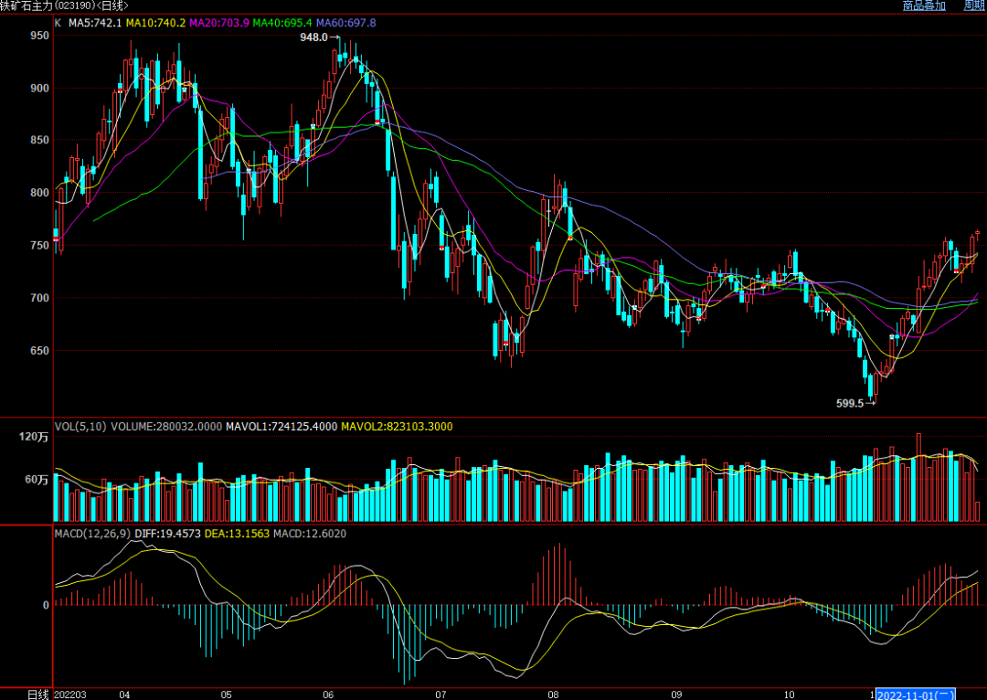 从11月1日铁矿石主力合约最低599.5到11月25日夜盘铁矿石主力合约收盘763,累计上涨163.5。