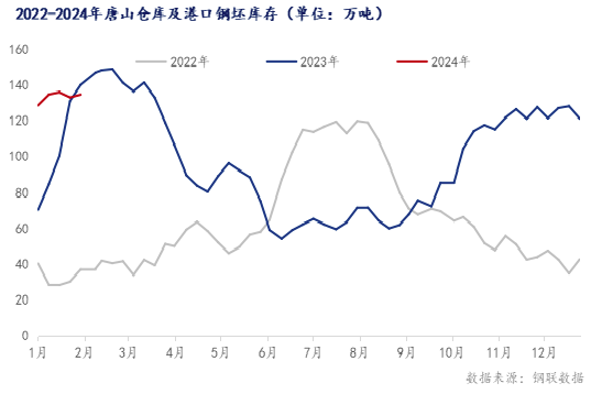 钢坯库存情况:本周唐山主要仓库及港口同口径钢坯库存137.81万吨,周环比增加1.6万吨。调研周期内,临近春节假期,下游轧材企业放假增多,仓储库存累库趋势增加。