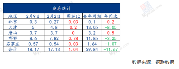 表二:京津冀地区热卷各地库存变化
