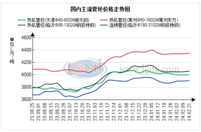 双焦盘面近乎涨停,带动期钢盘面止跌反弹,而主流日定价钢厂对外接单价仍是以稳为主,短时间内的盘面波动导致市场观望情绪较浓。钢厂陆续开始接3月份订单,但管厂节后新接订单量并不好,整体库存压力不小的情况下,对于管坯的采购频率放缓,钢厂接单略显乏力,另外山东、河北部分地区大雪对于运输影响不小,价格随盘面上探的阻力较大。不过盘面的止跌反弹对市场悲观情绪有一定的缓和作用,预计明天管坯价格偏稳运行。