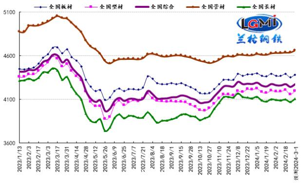 从钢材现货市场来看,国内钢市将呈现“全球经济纷繁复杂、货币信贷支撑预期、节后需求仍在恢复、货币政策提振市场信心”的格局。供给端:节后钢厂产能释放维持一定韧性,供给端呈现小幅波动态势。需求端:由于终端需求进入“停滞”以及节后大范围雨雪天气影响,市场成交依旧清淡,下游需求仍处于恢复之中。成本端:由于铁矿石价格有所下跌,废钢价格稳中下跌,焦炭价格明显下跌,使得生产成本支撑力度明显走弱。因此兰格钢铁研究中心预计(2024.2.26-3.1)国内钢材市场将在市场预期向上、多空频繁博弈、供给维持韧性、需求仍处恢复、成本明显走弱的影响下呈现弱势之中的探涨行情。
