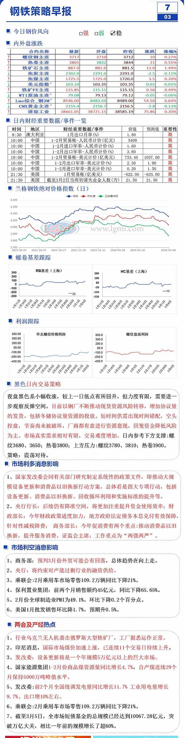 3月7日钢市早知道:各部委重磅发声阐政策 夜盘黑色多数收涨