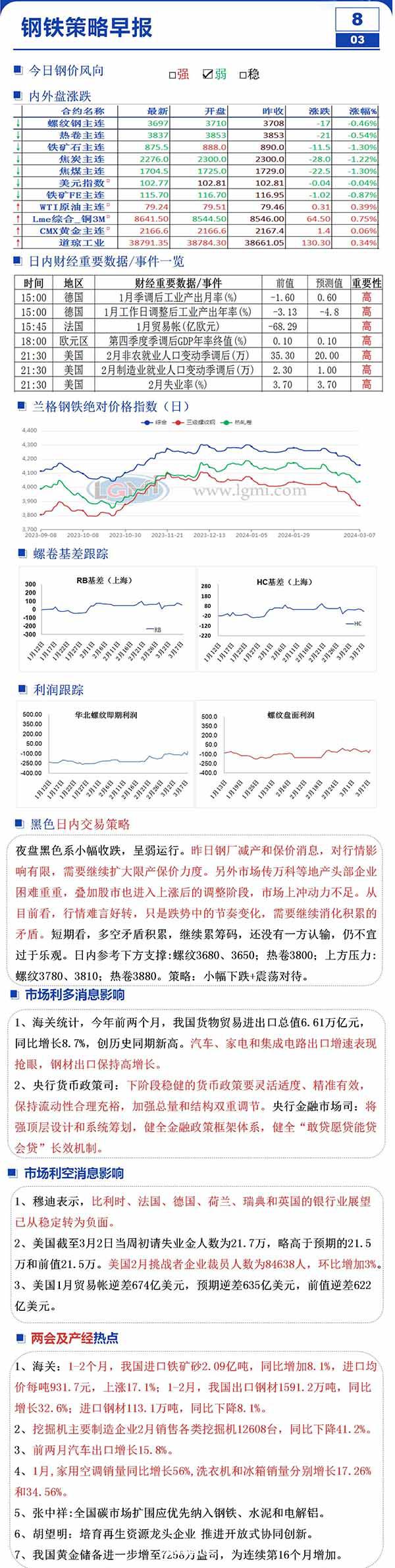 3月8日钢市早知道:黑色系再度走弱 出口向好 金融继续发力