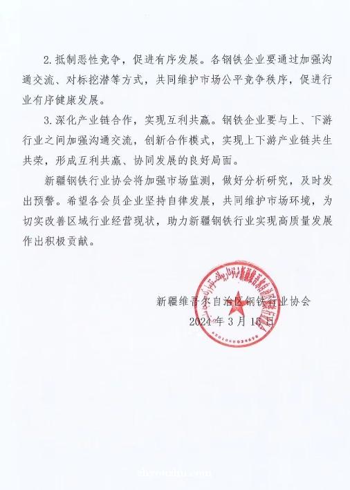 新疆钢协发布关于促进新疆钢铁行业健康发展的倡议书