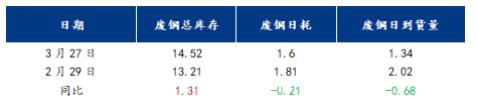 3月份,省内主导钢厂整体废钢消耗量较2月底时间下降明显,3月上旬,省内15家钢厂日消耗量尚可维持在2万吨以上,中旬开始,整体消耗量开始逐渐下降。成材价格月内持续下跌,铁矿石和焦炭保持同步下行趋势,废钢性价比持续下降,部分钢厂开始下调废钢使用量,叠加少部分钢厂有装置停产现象,因此废钢消耗量整体下降明显。截止到3月27日,Mysteel统计的15家钢厂日总消耗量在1.6万吨,较2月底下降0.21万吨,降幅11.6%。考虑到目前钢厂的生产和废钢性价比弱势,预计4月份钢厂废钢整体需求量仍不会有明显提升。