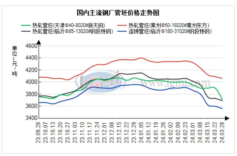 期货主流盘面收盘价格几乎触及前期低点,而今天废钢主流价格下调,钢厂对于焦炭七轮提降意愿越来越强,铁矿的港口库存也在不断累积,原料端的价格走势偏弱,钢厂挺价比较困难,管坯价格也几乎触及去年最低点,管厂为了对冲厂内高价坯料,有适量的补库操作,但目前行情偏空的走势下,采购量比较小。管坯市场各个资源之间价格竞争激烈,低价资源相对比较受欢迎,不过成本端尚有支撑,今天盘面有低位震荡运行,午后收盘并未再度下行,预计明天管坯市场补跌10-20元为主。
