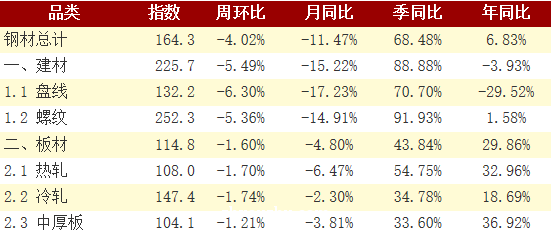 2. 盘线库存下降速度有所加快,螺纹钢库存下降速度略有加快;热轧卷板库存下降速度有所加快,冷轧库存下降速度有所加快,中厚板库存下降速度有所放缓