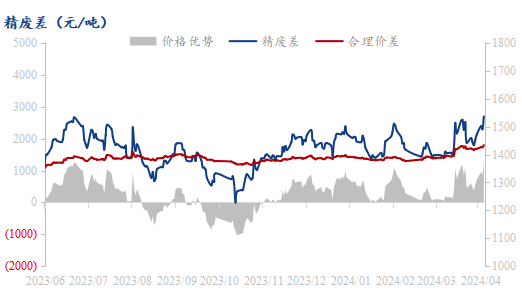 随着铜价的走强,国内进口盈利窗口关闭,近期一直处于大幅亏损的状态,从近期调研的情况来看,后续国内进口铜流入十分有限,进入四月份以来,受到市场供应端消息影响,铜价上涨明显,抑制终端市场消费,进口盈利窗口关闭,导致冶炼企业出口业务有所增加,后续在国内新产能释放,下游需求无法覆盖的前提下,转向出口的企业会有所增加,进口端也或将受限,主要在于韩国冶炼厂的检修以及日本冶炼厂到货数量有减少的可能,加之历史来看上半年,往往是国内进口盈利较少的时期,因此进口预期也略显不足。保税区库存也因此受到明显影响,库存持续走高,目前市场库存6.93万吨。