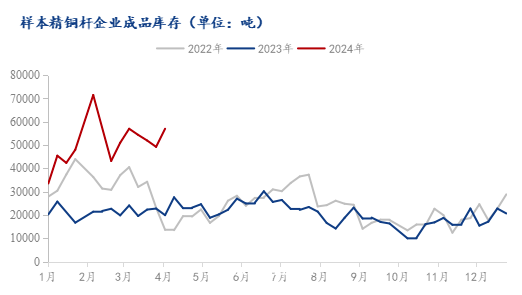 从成品库存来看,目前铜杆企业的成品库存均处于相对较高的位置,虽然有一定的订单需求,但高价订单执行力不足,导致了市场部分铜杆企业开始出现了不同程度的成品库存积累。