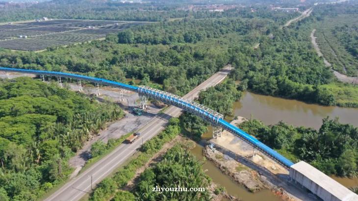 该工程是马来西亚东钢二期270万吨产能配套项目,通过在甘马挽港口建设两座1500t/h桥式抓斗卸船机、两条平皮带输送机转运及三条管带机连接至公司原料场,使得原、燃料可以直接由港口运送至综合料场。相比传统货车运输方式,具有无物料洒落、无扬尘等特点,可节省海运费5美元/吨钢,大大加快了泊位周转效率。