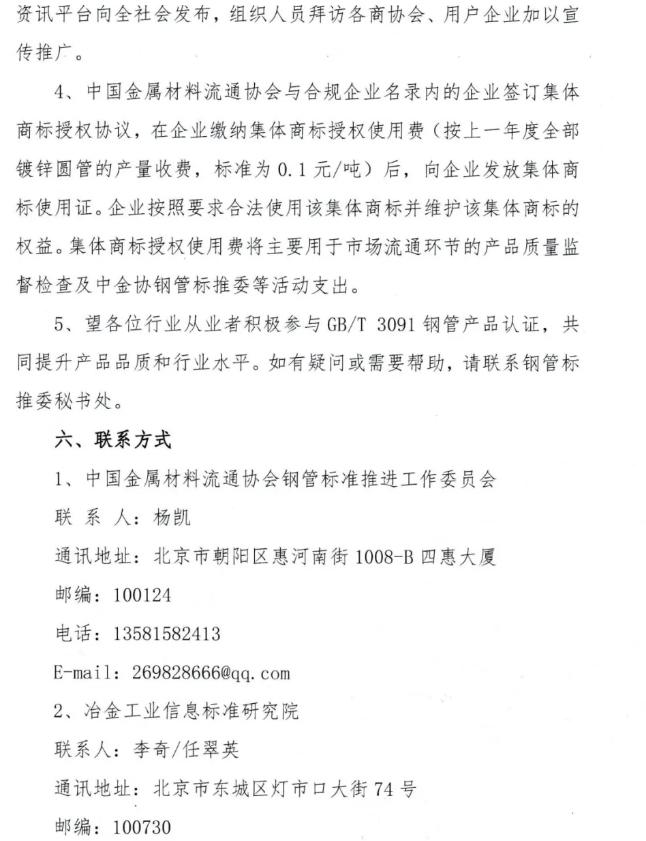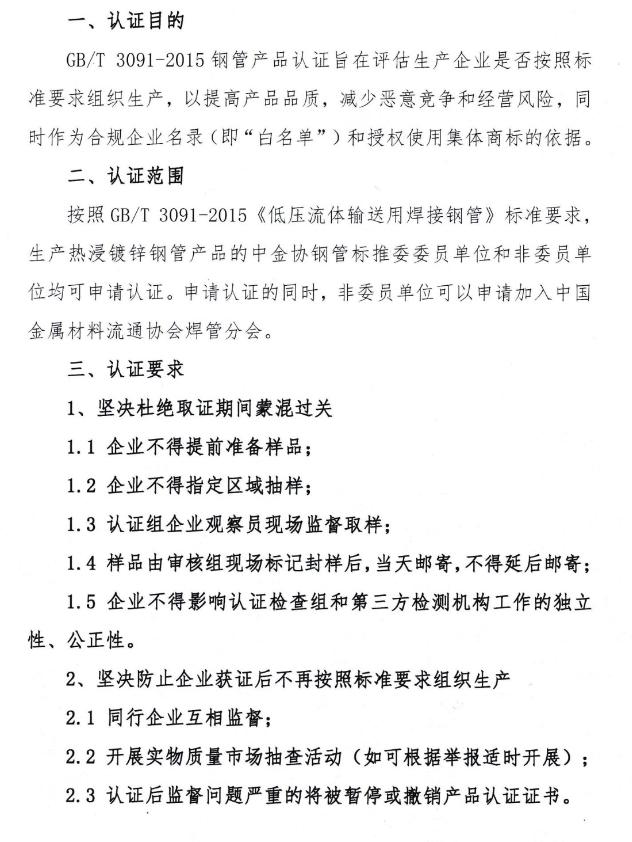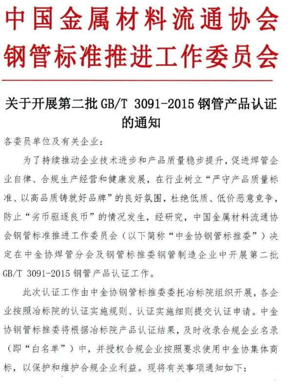 关于开展第二批GB/T 3091-2015钢管产品认证的通知