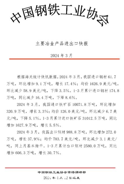 时间:2024-04-19 13:33:24 编辑:铸小编 来源:中钢协 浏览:213次 【