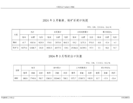 3月我国出口钢材988.8万吨,环比增长37.9%