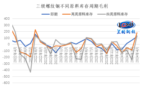 图2 三级螺纹钢不同原料库存周期毛利水平变化