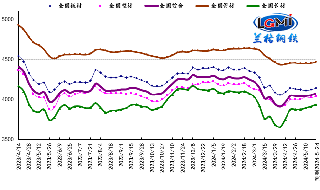 从钢材现货市场来看,供给端:由于钢厂持续受到利润压缩的影响,但钢厂产能释放意愿依然较强,供给释放力度维持小幅上升态势。需求端:由于旺淡季转换的影响,市场成交呈现忽上忽下的态势,区域和品种均呈现成交冷暖不一,同时下周北方将进入“晴热热”,南方也将步入“雨幕幕”,季节性的影响效应也将更加明显。成本端:由于铁矿石价格小幅上涨,焦炭价格维持稳定,废钢价格小幅下跌,使得生产成本的支撑韧性仍在。因此兰格钢铁研究中心预计(2024.5.20-5.24)国内钢材市场将政策再次加码、供给有限释放、成交冷暖不一、成本韧性支撑的影响下国内钢市或将呈现震荡小幅上涨的行情。