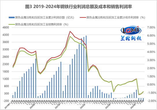 据国家统计局数据显示,2024年1-4月,黑色金属冶炼和压延加工业实现营业收入25910.2亿元,同比下降4.2%;营业成本25237.0亿元,同比下降3.3%;亏损222.2亿元。