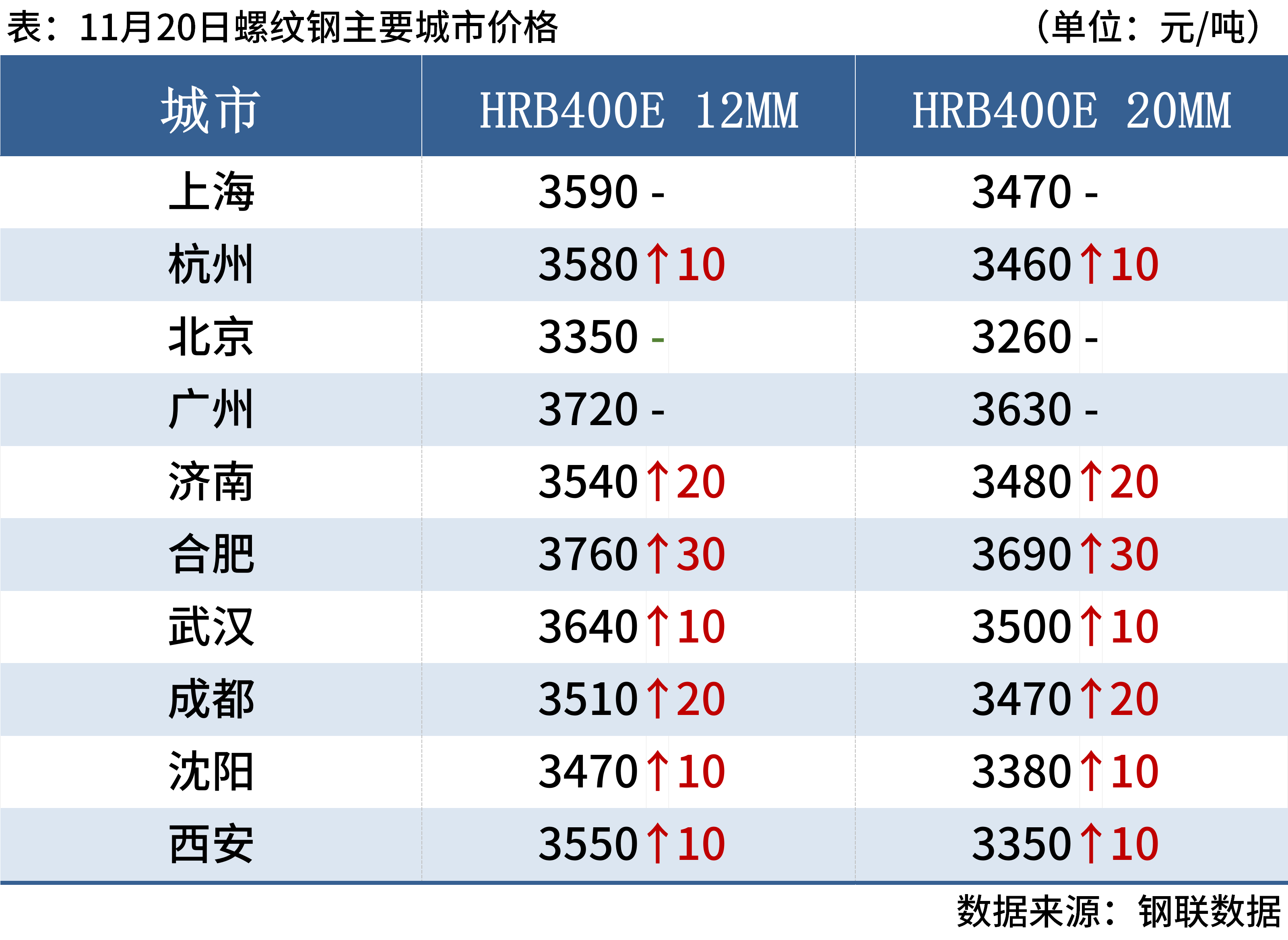 11月20日,4家钢厂上调建筑钢材出厂价10-30元/吨。