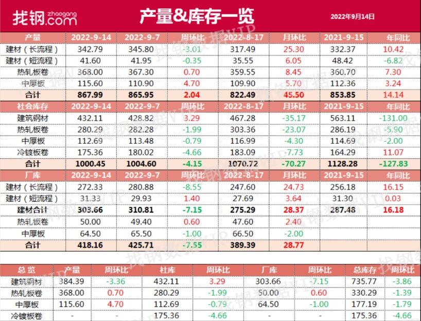 ①建材产量384.39万吨,周环比减3.36万吨,降0.87%;年同比增3.60万吨,升0.95%。