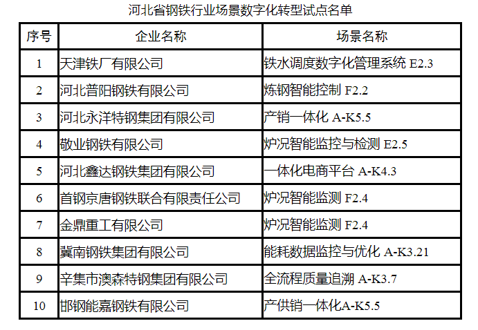 河北工信厅公示河北省钢铁行业场景数字化转型试点名单