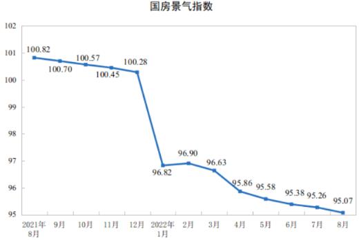 8月份,房地产开发景气指数(简称“国房景气指数”)为95.07。
