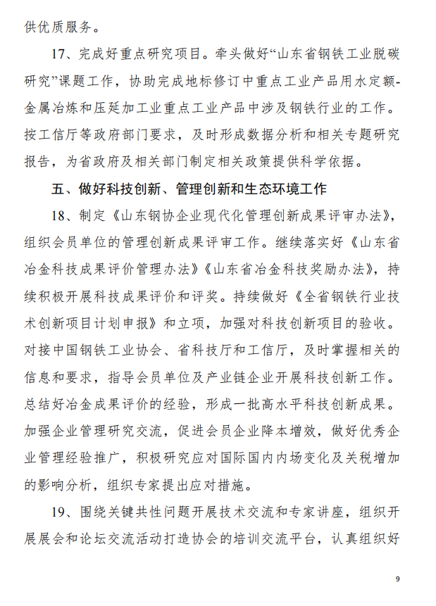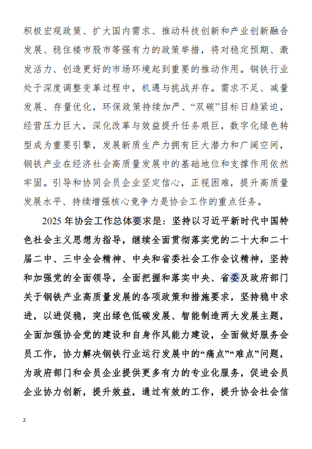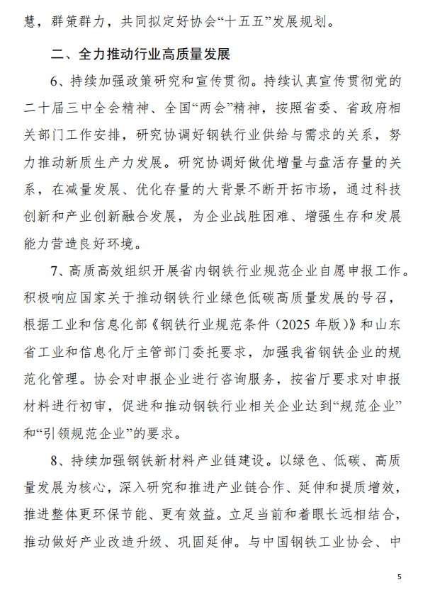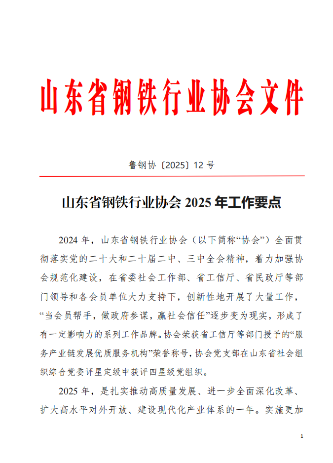 山东省钢铁行业协会2025年工作要点