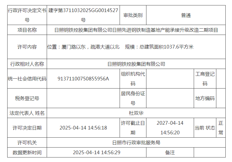 日照市自然资源和规划局公示日照钢铁日照先进钢铁制造基地产能承接升级改造二期项目