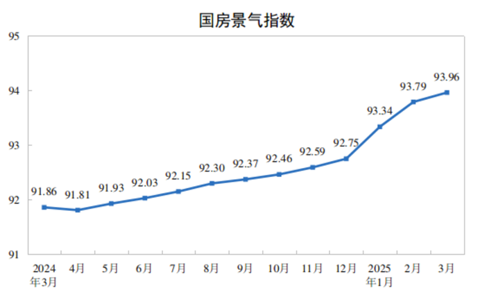 3月份,房地产开发景气指数(简称“国房景气指数”)为93.96。